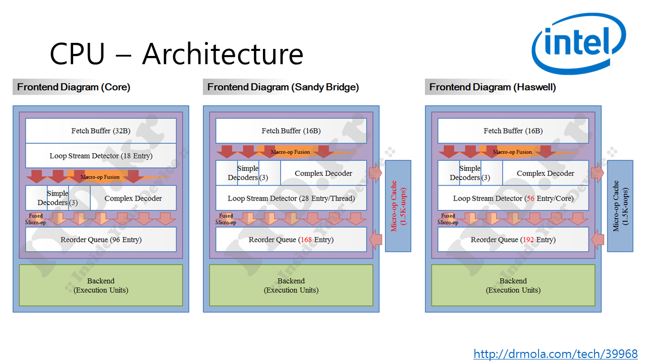 웨스트미어에서 샌디로, 아이비에서 하스웰로 넘어갈때는 아키텍처가 바뀌었다.