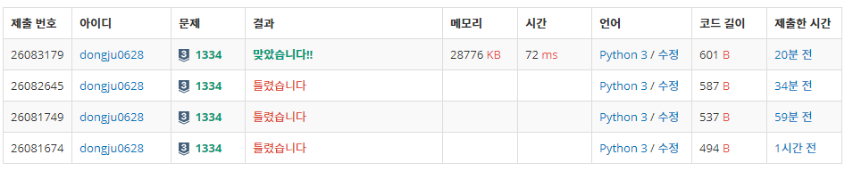 우선, 1차 시도는 빠르게 틀렸다.
