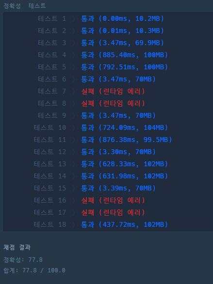 테스트케이스만 보면 답은 다 맞는것으로 나오니 알고리즘은 맞는다는 뜻이고 python에서는 자료형의 크기때문에 틀린게 아니라는 것이다.