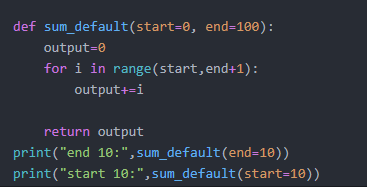 기본 매개변수: '매개변수 = 값' 의 형태로 되어있는 매개변수, 매개변수를 입력하지 않았을 때 (default) 값으로 들어감