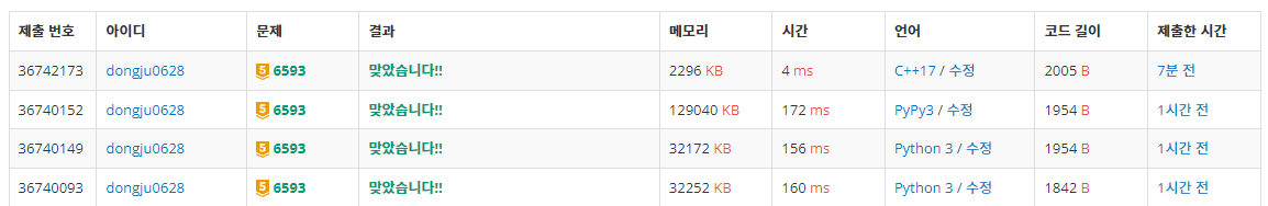 1167번: 트리의 지름 트리가 입력으로 주어진다. 먼저 첫 번째 줄에서는 트리의 정점의 개수 V가 주어지고 (2 ≤ V ≤ 100,000)둘째 줄부터 V개의 줄에 걸쳐 간선의 정보가 다음과 같이 주어진다. 정점 번호는 1부터 V까지 www.acmicpc.net 문제 요약 트리의 지름 출력 트리에서 임의의 두 점 사이의 거리 중 가장 긴 것 접근 1. 생각의 흐름 그래프 탐색 두번으로 진행하면 될 것 같다. 아무 점에서 시작해서 가장 먼 지점까지 탐색한다. 첫번째 탐색이 끝나면 가장 먼지점에서 두번째 탐색을 시작한다. // 1. 아무 노드에서 시작해서 가장 먼노드까지 간 다음, pair tmp; tmp = bfs({1, 0}); // 2. 가장 먼노드 노드에서 가장 먼노드까지 탐색 tmp = bfs({t..
